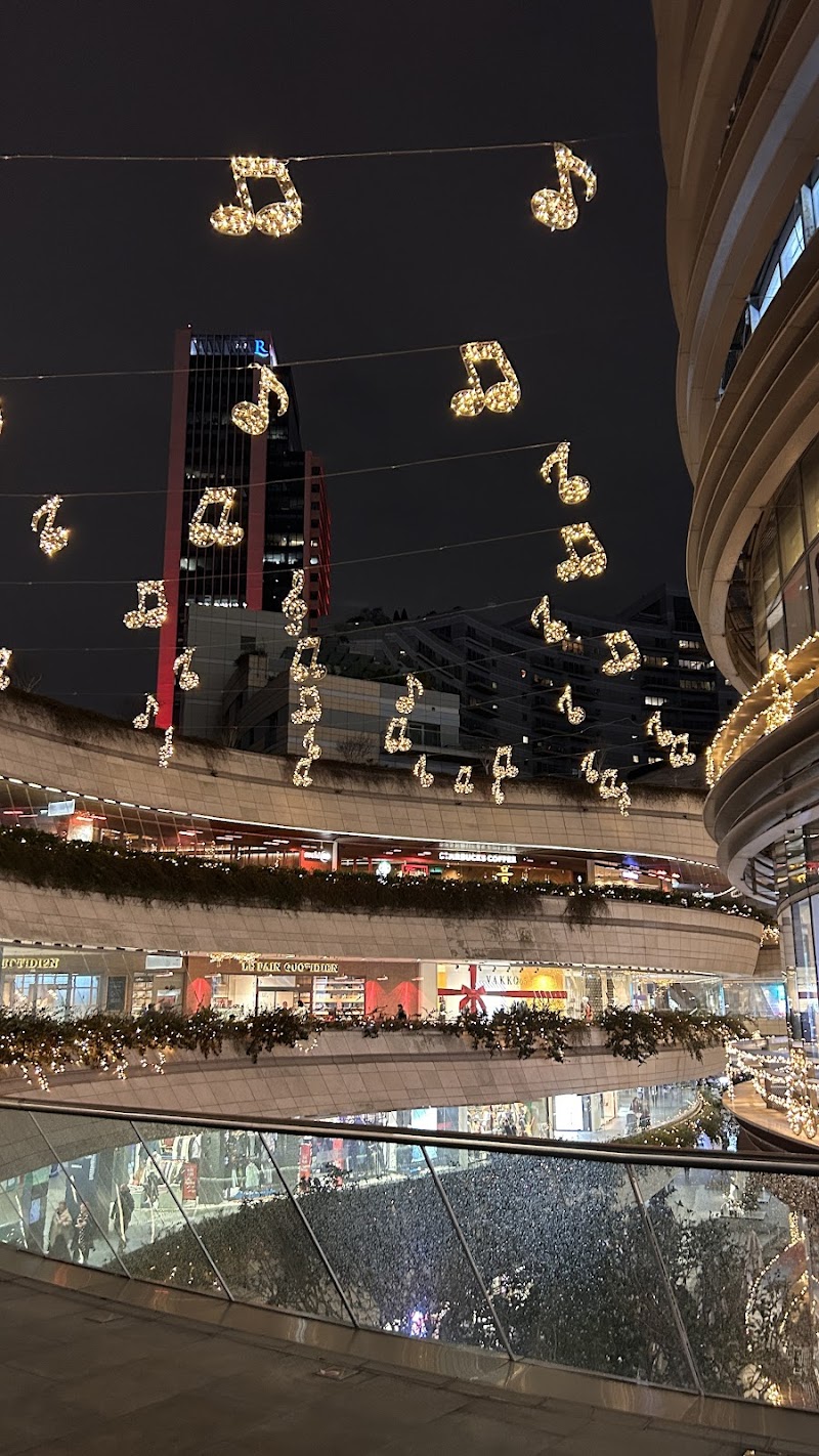 مركز تسوق معاصر في الهواء الطلق يضم مجموعة متنوعة من المتاجر والمقاهي وسط مناطق منسّقة ونوافير